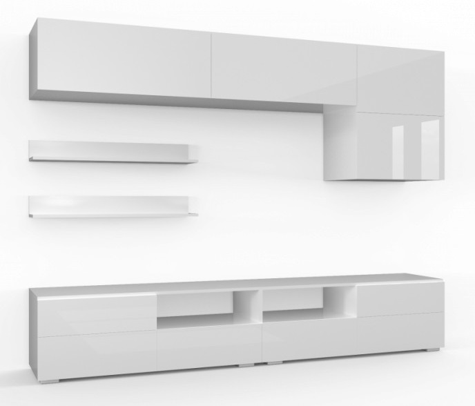 Гостиная Лия-2 выполнена в современном европейском стиле. Её дизайн совмещает в себе современные тренды: белый глянец, скругленные фасады МДФ, отсутствие лицевой фурнитуры. Белый цвет отлично сочетается со всей цветовой палитрой, что позволяет создавать яркий интерьер и компоновать с другой мебелью. Стенка включает в себя нишу под ТВ с открытыми и закрытыми полками для размещения приставок, медиа устройств, книг и элементов декора.