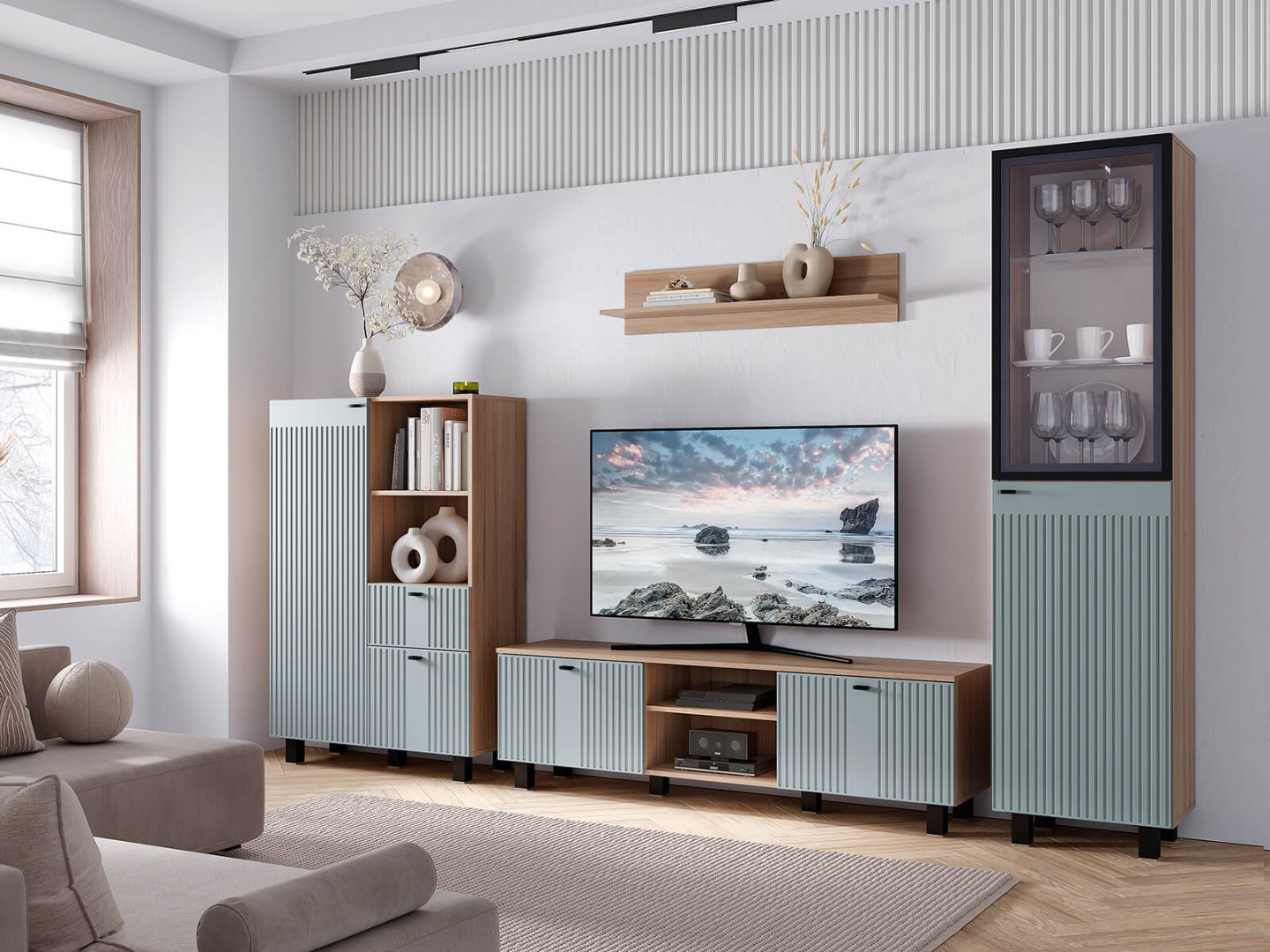 Модульная гостиная Олива - идеальный тандем ультрасовременного дизайна и функционала. Матовые фасады из МДФ пастельного оттенка с оригинальной фрезеровкой отлично впишутся в любой интерьер, выполненный в современном стиле и тяготеющий к эффектным и нестандартным решениям. Комплект смотрится благородно, солидно и необычайно стильно.