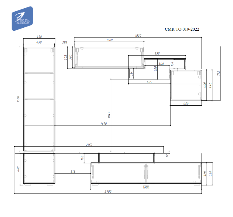 Стенка SKYFREE это единая конструкция, и конструктивно состоит из элементов с габаритами: