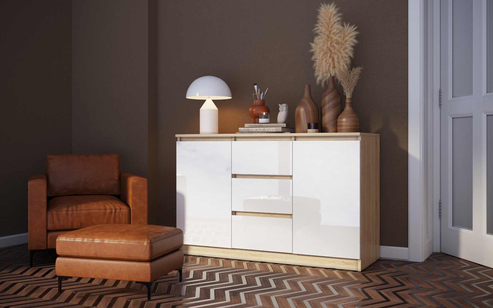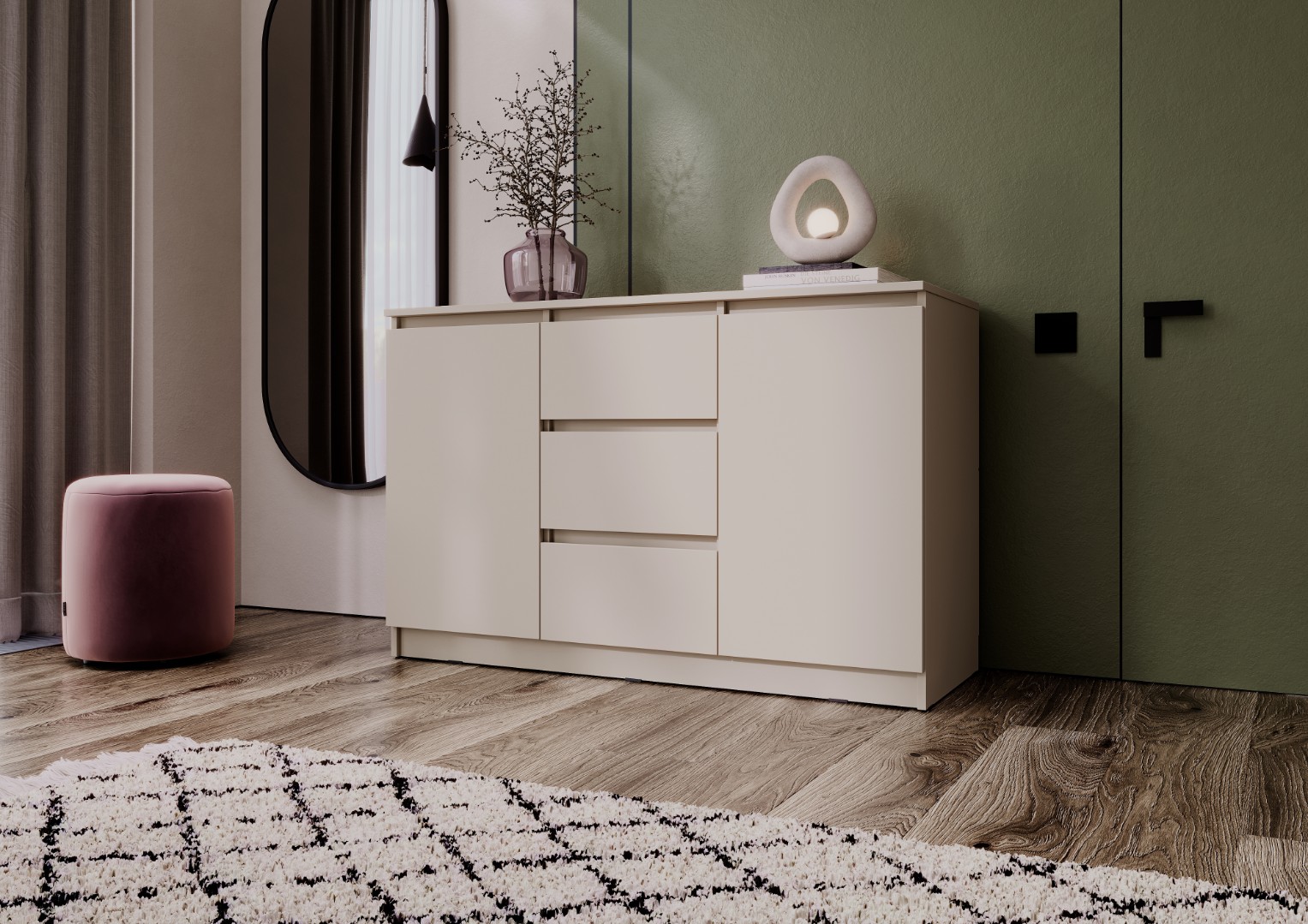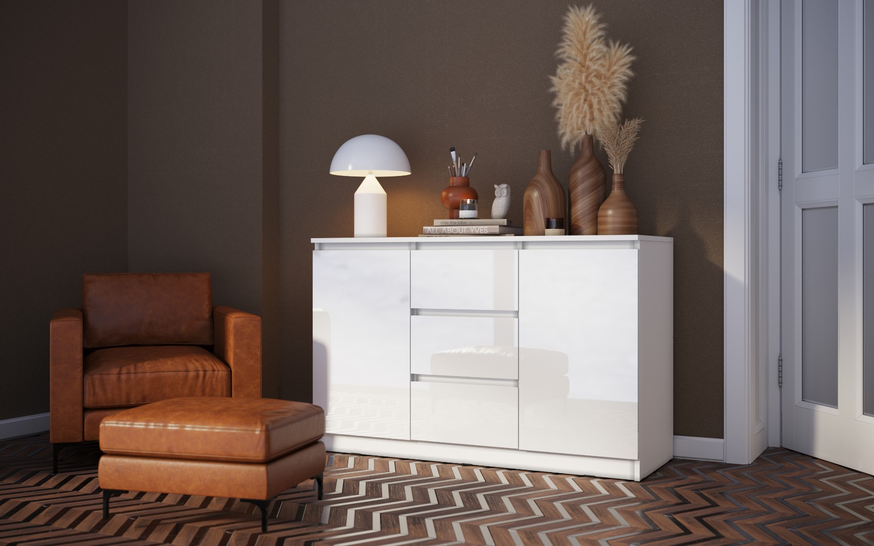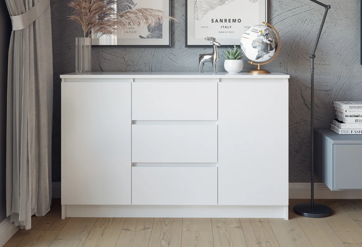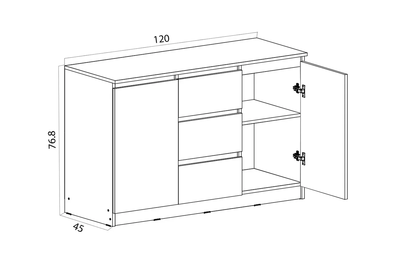 Достигните изумительной элегантности и практичности с комодом из превосходной коллекции "Челси". Этот изысканный комод идеально сочетает стиль и функциональность. Боковые полочки с закрытыми дверцами обеспечивают удобное хранилище, а в центре расположены 3 выдвижных ящика, идеально подходящих для организации пространства. Благодаря применению шариковых направляющих, ящики легко и бесшумно выдвигаются. С размерами шириной 120 см, этот комод легко интегрируется в ваш интерьер, и не упустите возможность приобрести его.