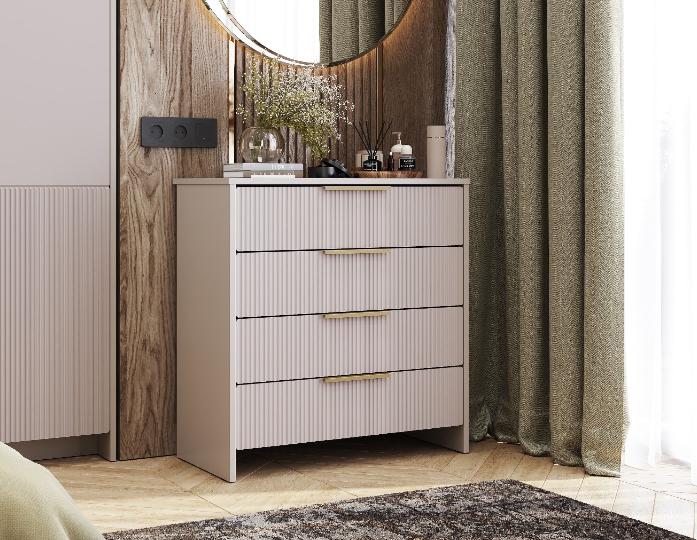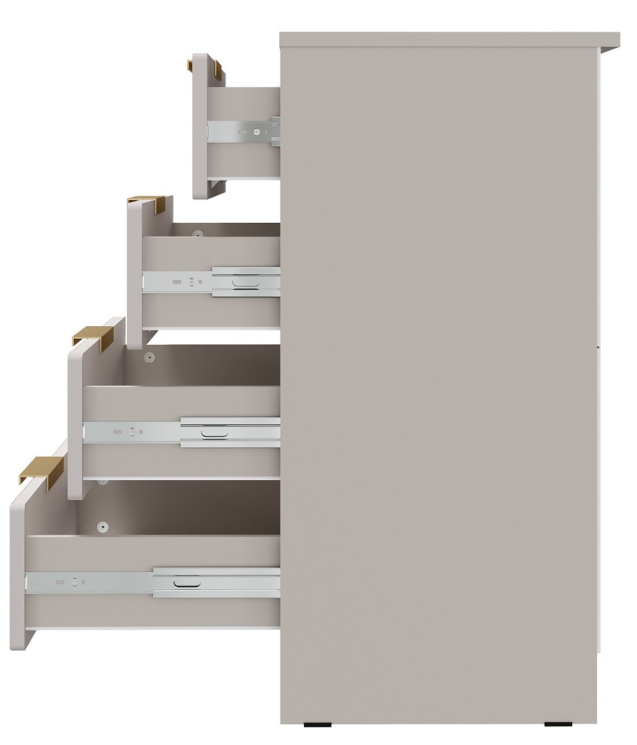 Комод Пандора – стильная и функциональная модель в нежных, сдержанных оттенках «Айриш» и «Кашемир», которые создают в помещении неповторимую атмосферу гармонии и домашнего уюта. Оригинальные ручки в цвете «Матовое золото» подчеркивают элегантный образ изделия. Особенно эффектно такой предмет мебели будет смотреться в сочетании с другими модулями из одноименной коллекции.