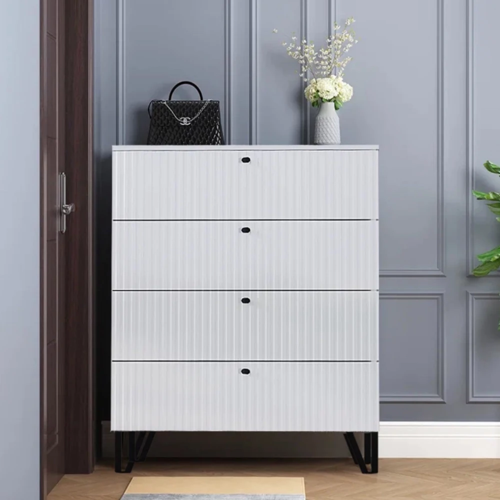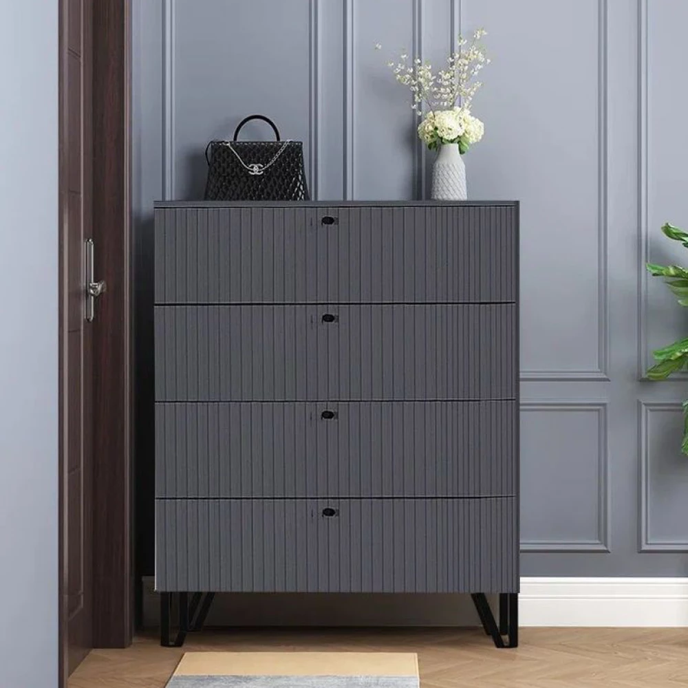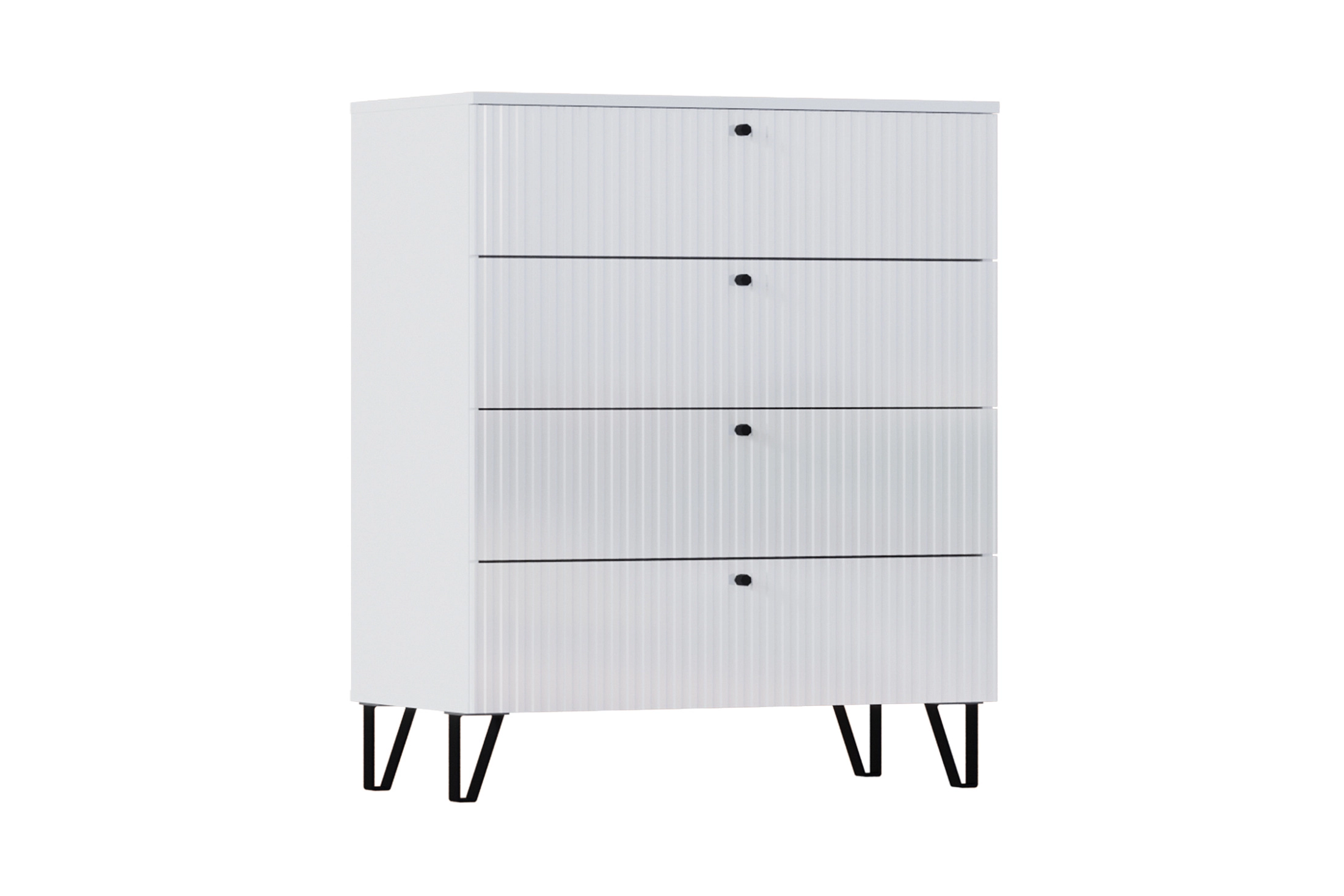Комод «Оливия» с четырьмя выдвижными ящиками на шариковых направляющих не только будет полезен как место для хранения вещей, но и придаст оригинальность интерьеру благодаря эффектным фактурным фасадам, которые разбавляют привычную обстановку и смотрятся благородно.