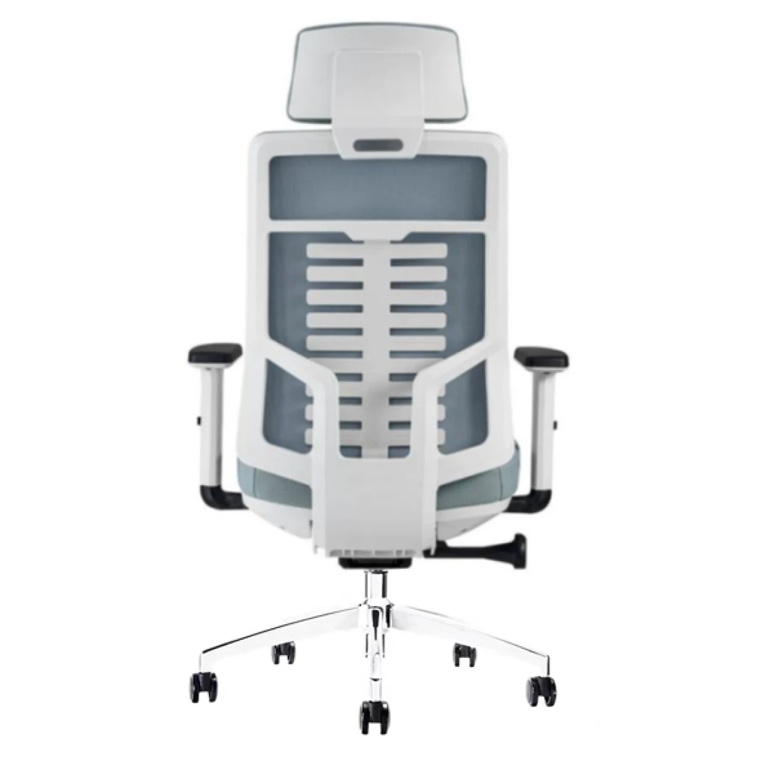 Модель оснащена подъемными подлокотниками, которые помогают сохранять правильную позу во время работы. Подголовник регулируется по высоте, что обеспечивает дополнительную поддержку шеи и головы.