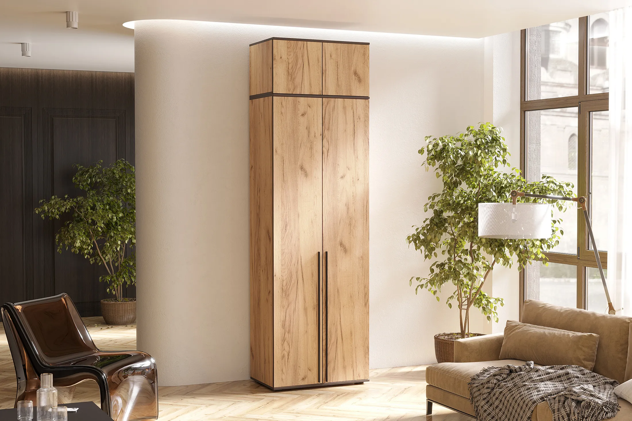 Представляем вашему вниманию шедевр — двустворчатый распашной шкаф. Каждая деталь этого шкафа тщательно продумана для удобного размещения и хранения вещей. Широкая штанга позволит вам разместить вашу гардеробную коллекцию с легкостью, а полки сверху и снизу создадут идеальное пространство для организации аксессуаров и других важных предметов. Но не только функциональность делает этот шкаф настоящим премиум-продуктом. Производитель уделил особое внимание деталям, чтобы достичь потрясающего стиля. На фасаде дверей расположены две металлические ручки черного цвета. Накладные петли обеспечивающим надежность и гладкость движения при открывании дверей. Антресоль, расположенная сверху, предоставит дополнительное место для хранения обуви или других вещей. И