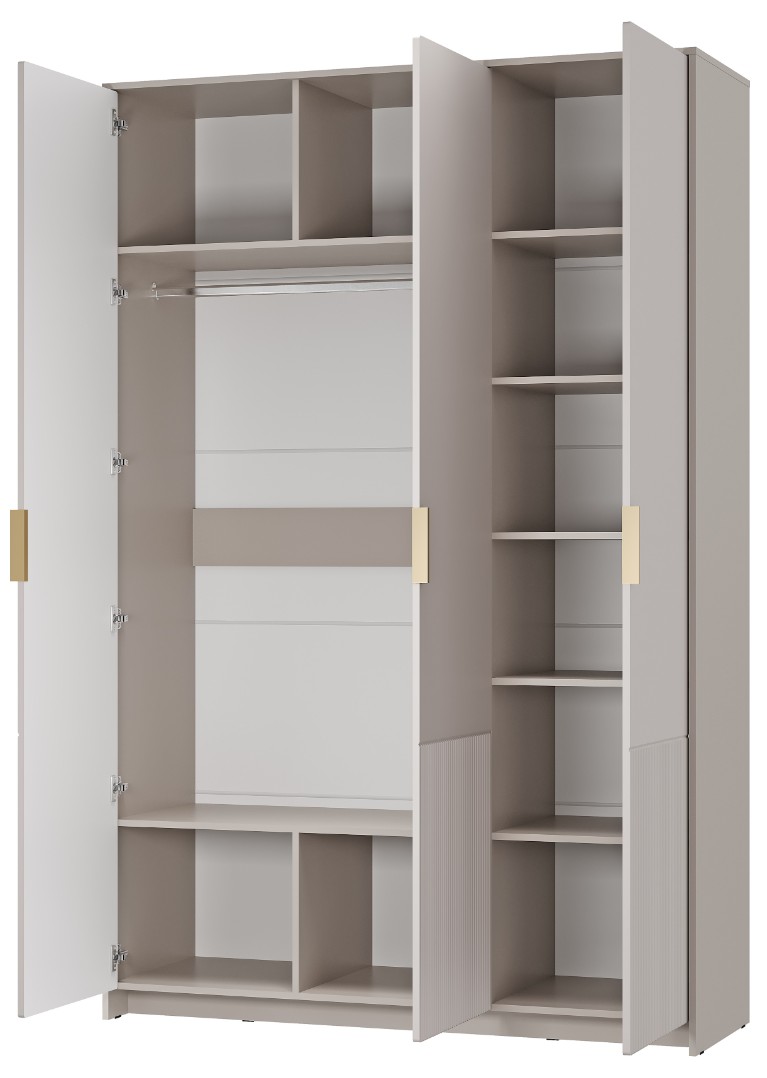 Шкаф 3-х створчатый Пандора – стильная и функциональная модель в нежных, сдержанных оттенках «Айриш» и «Кашемир», которые создают в помещении неповторимую атмосферу гармонии и домашнего уюта. Оригинальные ручки в цвете «Матовое золото» подчеркивают элегантный образ изделия. Особенно эффектно такой предмет мебели будет смотреться в сочетании с другими модулями из одноименной коллекции.
