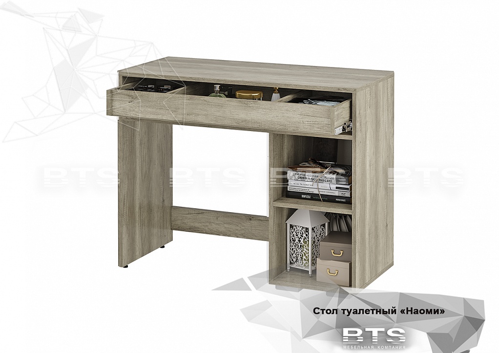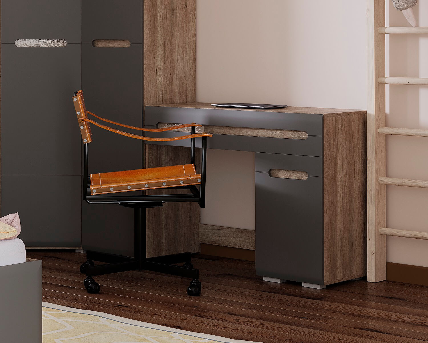 Коллекция "Наоми" представляет стол СТ-4 в расцветке дуб каньон и графит. Данный стол подойдёт как в детскую, так и в офис, оснащён дополнительными закрытыми отсеками для хранения канцелярии и выкатным ящиком. Рабочая зона стола довольно просторная, что является дополнительным плюсом, но главное достоинство - это качество материалов, из которых сооружён стол. Утончённый и строгий дизайн не оставит Вас равнодушным и будет радовать своим видом долгое время.
